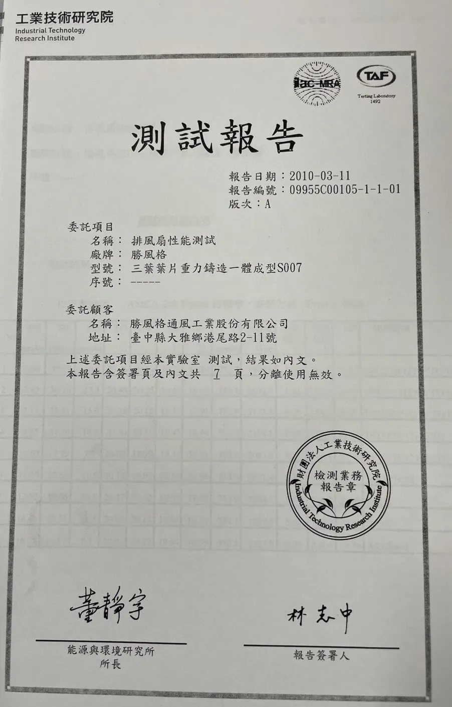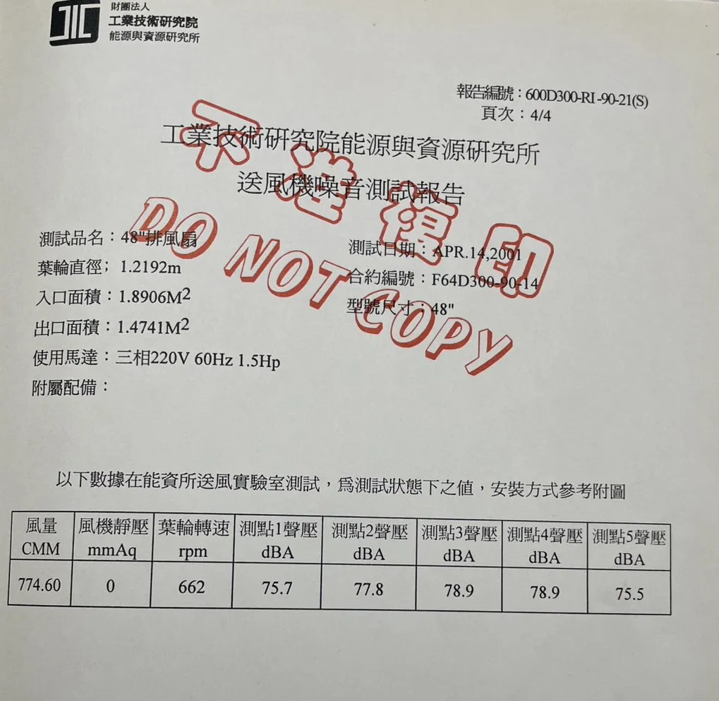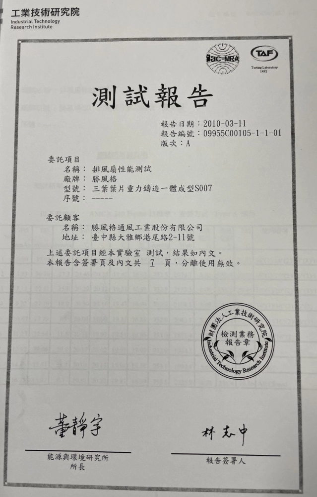 負壓式抽風機檢測報告