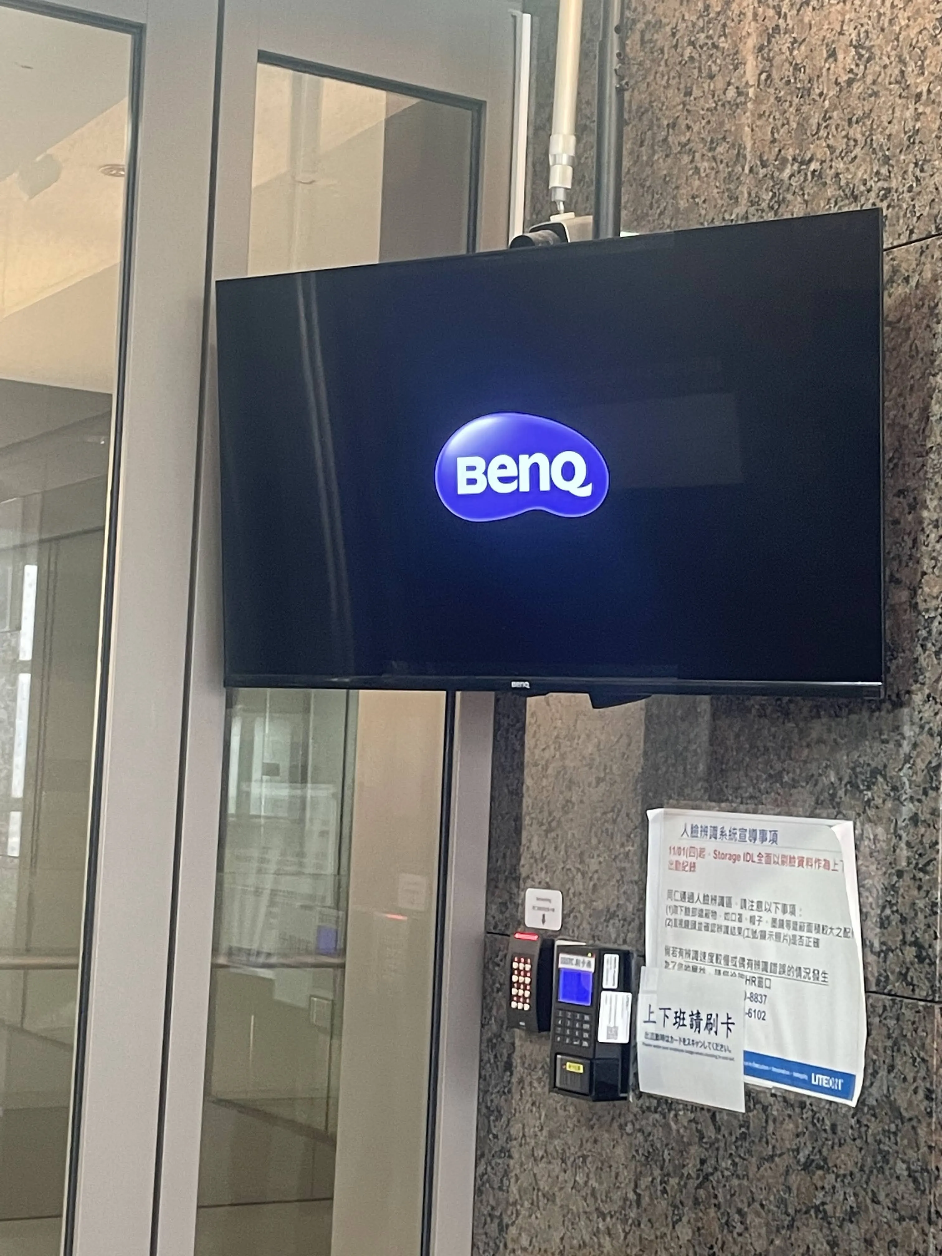 台北科技公司-門口40吋電子看板安裝。電子看板可即時更新企業公告、訪客資訊與品牌內容,成功提升門面形象與資訊效率,成為企業迎賓區的重要展示窗口。