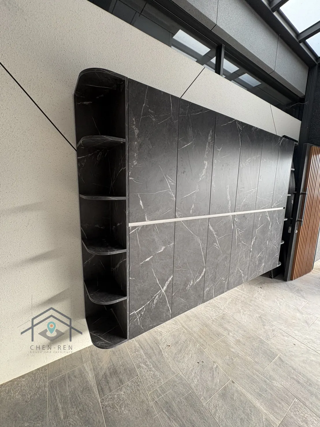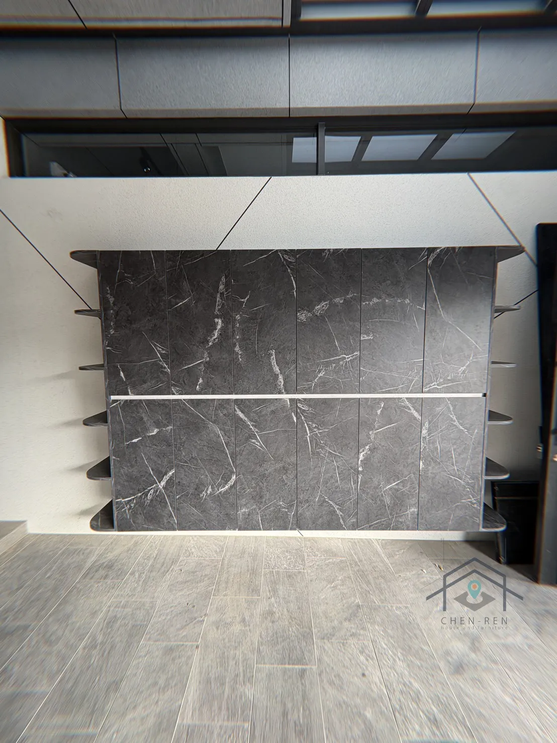 門片-石頭灰;櫃體-銀灰清水模;開放櫃體-花崗岩灰