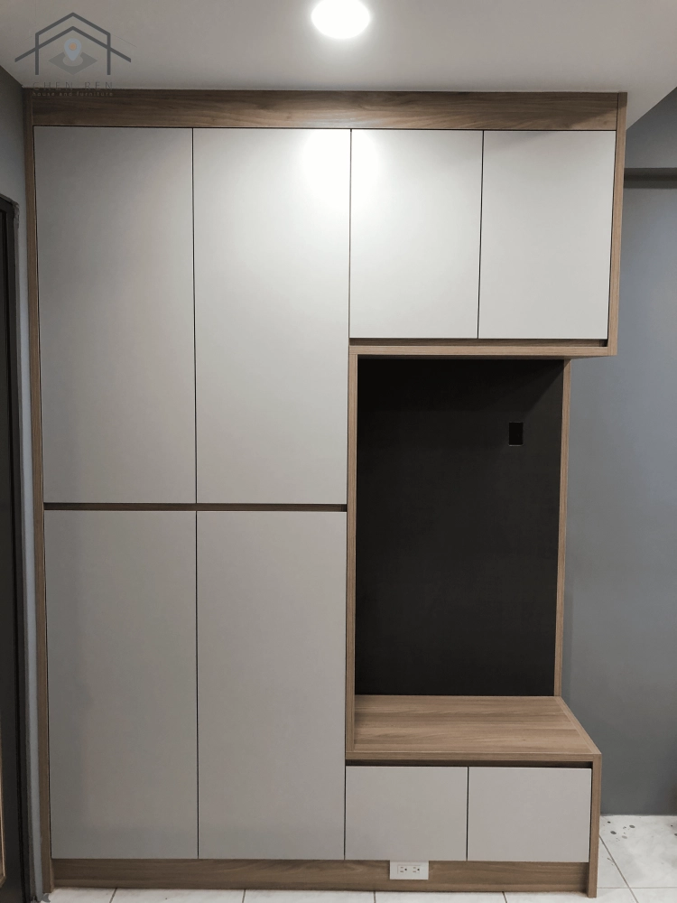 門片櫃體-布紋灰;開放櫃體-淺灰