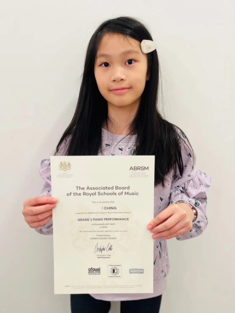 蔡O妡 通過 英國皇家鋼琴Initial級檢定