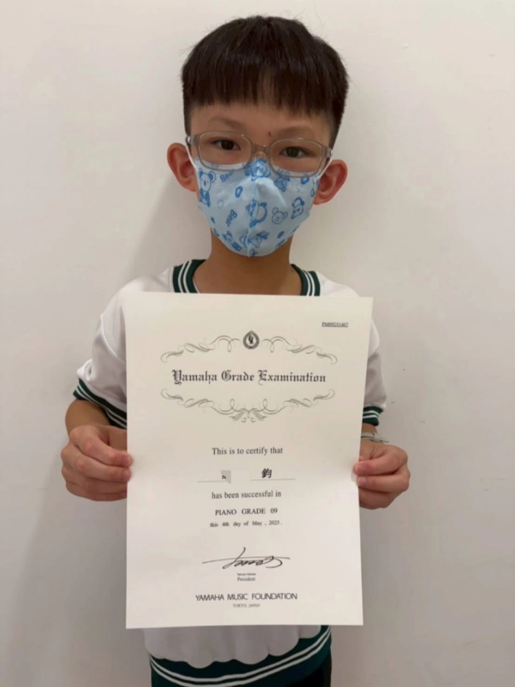 張O齊 通過 YAMAHA鋼琴9級檢定