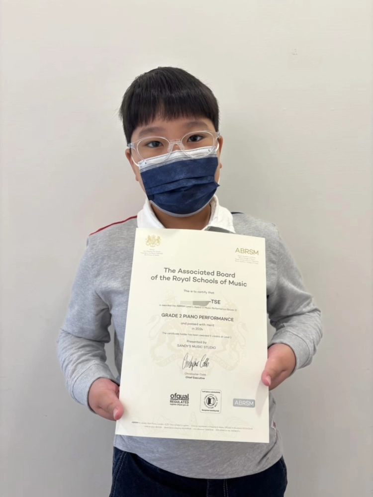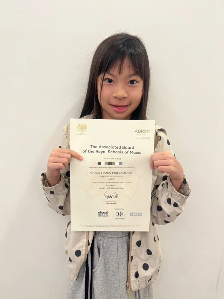 陳O熙 通過 英國皇家鋼琴3級檢定