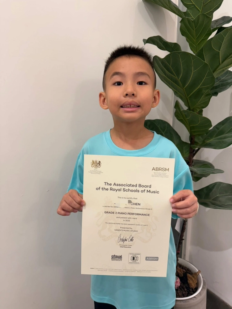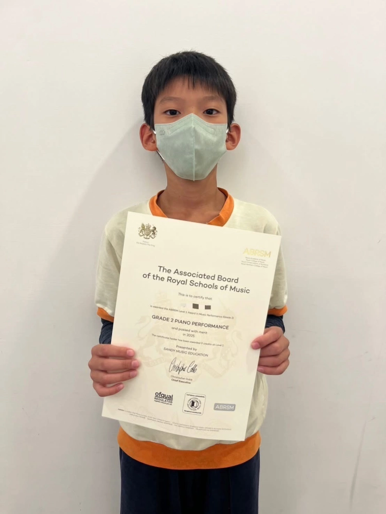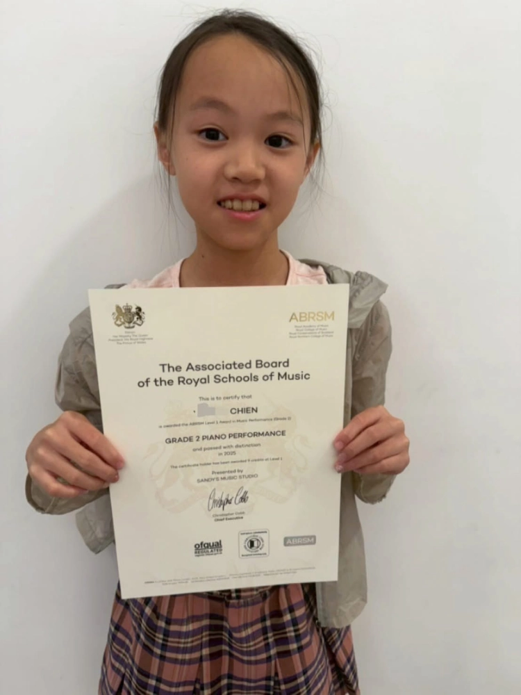 陳O傑 通過 英國皇家鋼琴2級檢定