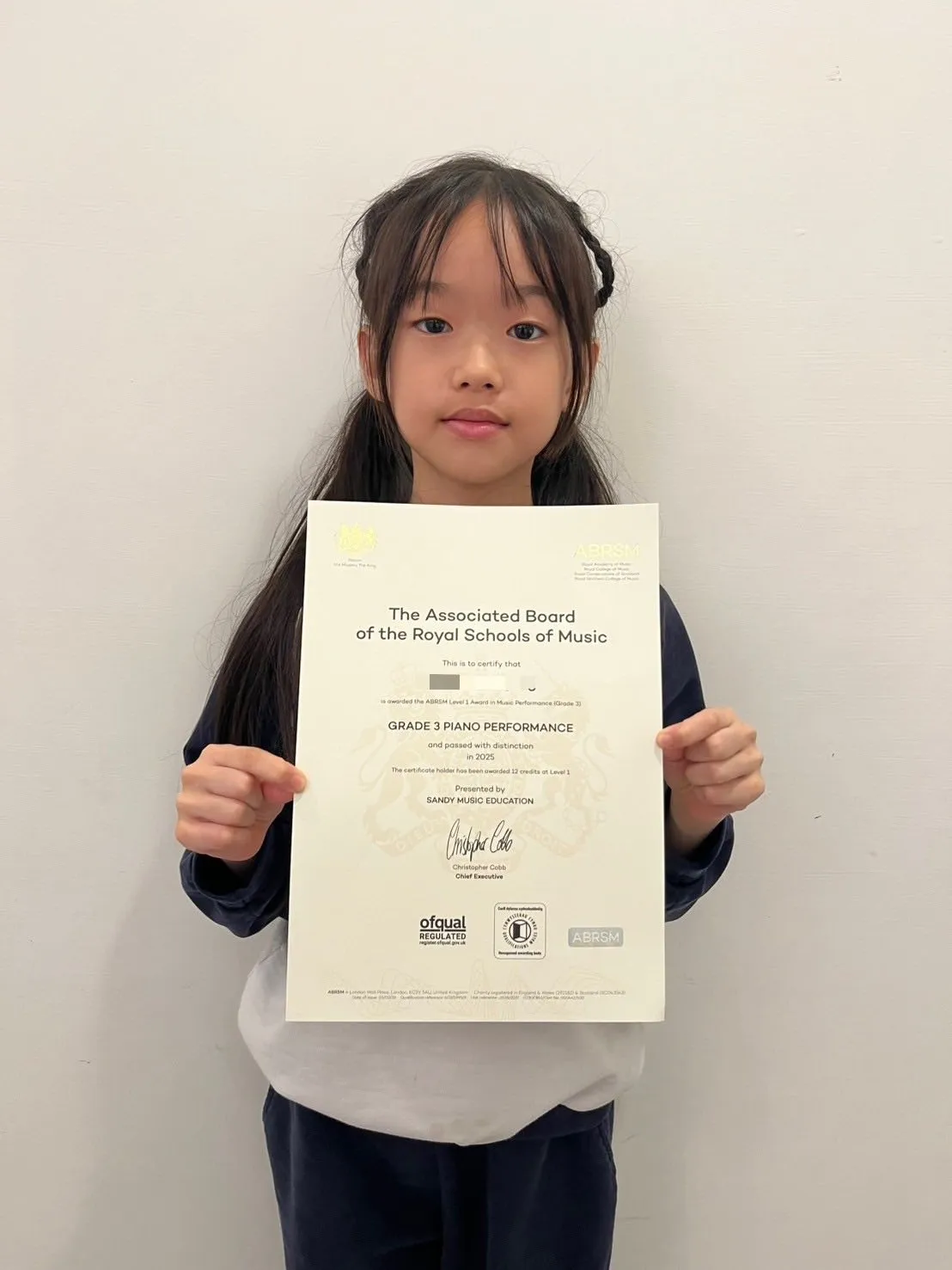 陳O熙 通過 英國皇家鋼琴3級檢定