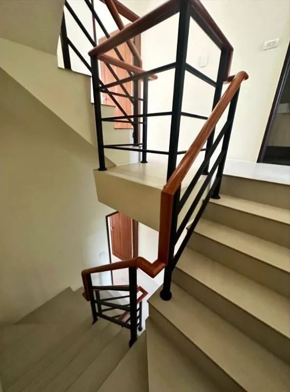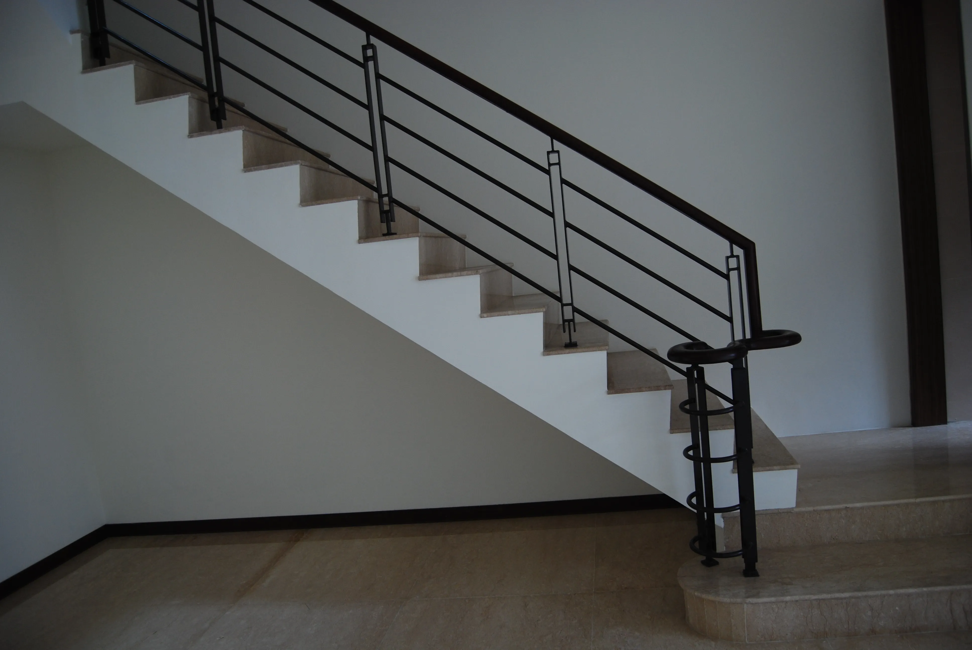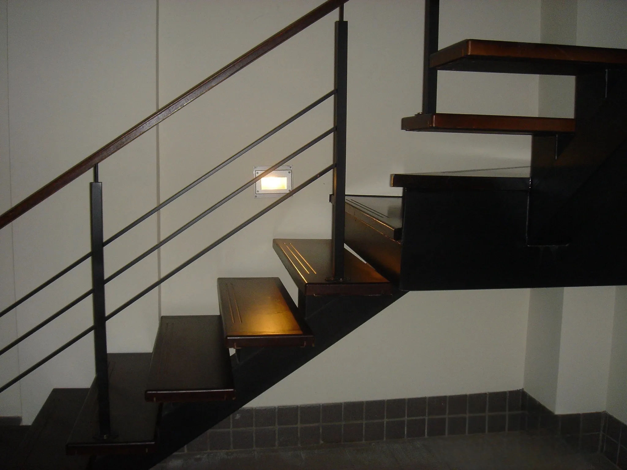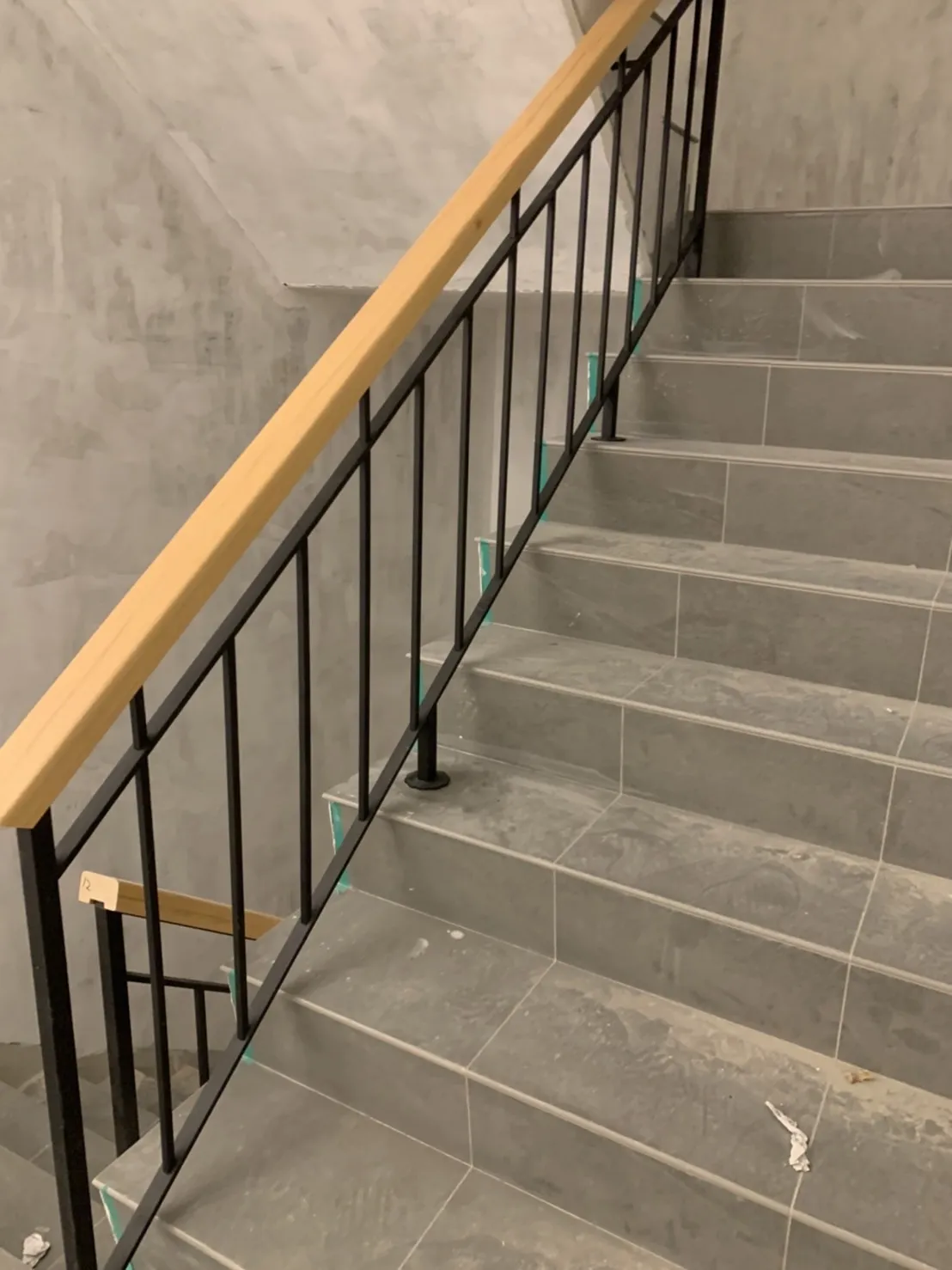 新竹竹北|住宅不銹鋼樓梯扶手工程-本案位於新竹竹北住宅樓梯空間,採用黑色不銹鋼結構搭配實木扶手,線條簡約俐落,兼顧行走安全與居家溫潤質感。
