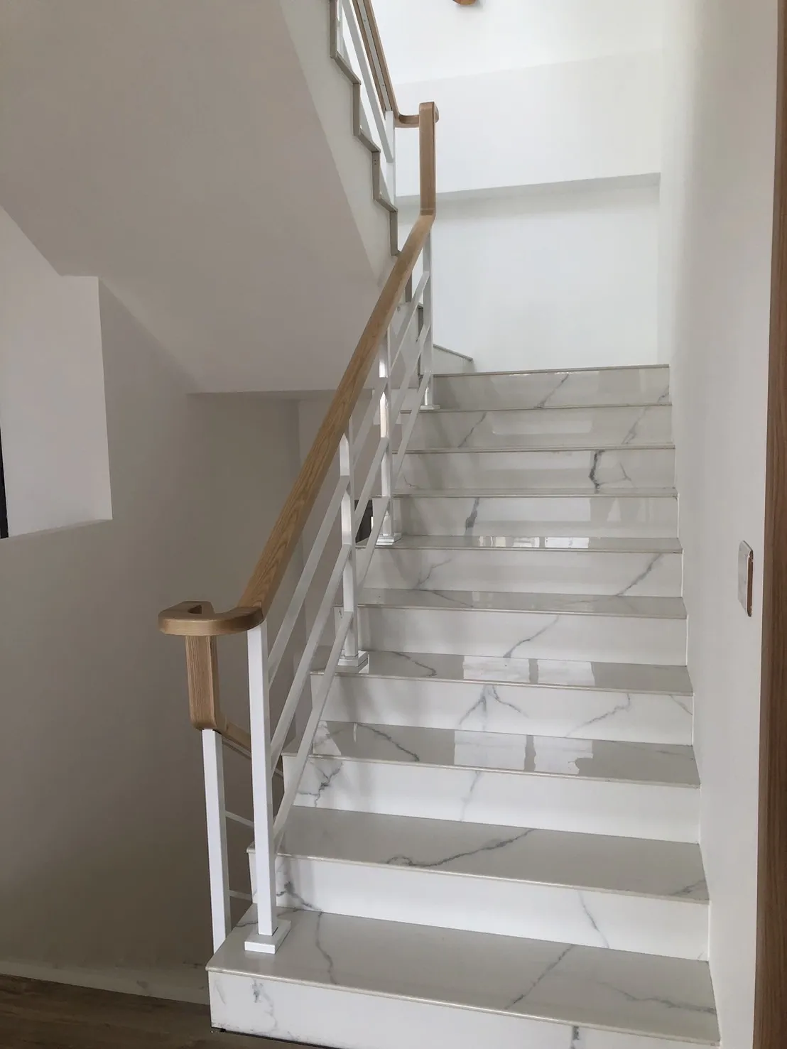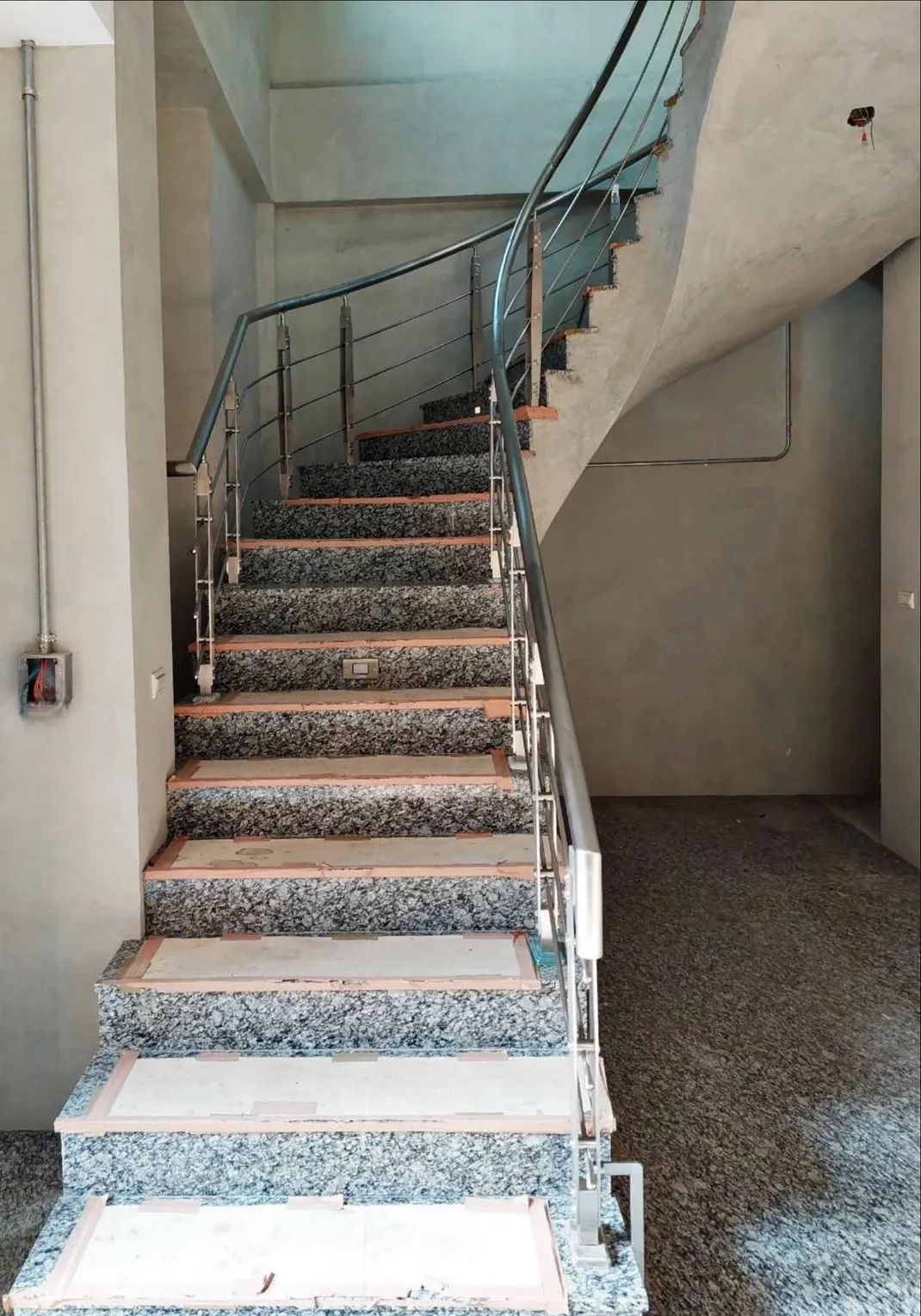 新竹東區|白鐵造型不銹鋼樓梯扶手-本案位於新竹東區,採用白鐵造型不銹鋼樓梯扶手,線條流暢、弧形轉折自然,搭配石材階梯,兼顧結構安全與現代空間美感。