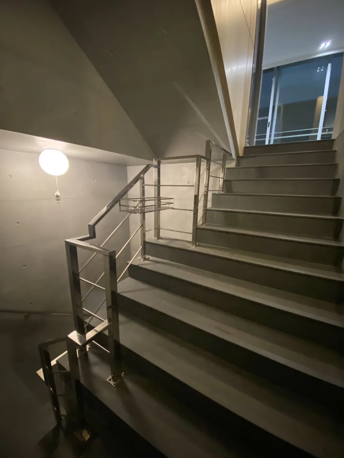 苗栗三義|白鐵造型不銹鋼樓梯扶手-本案位於苗栗三義,採白鐵造型不銹鋼樓梯扶手設計,線條俐落、結構穩固,搭配室內清水模牆面,提升整體空間質感與行走安全性。