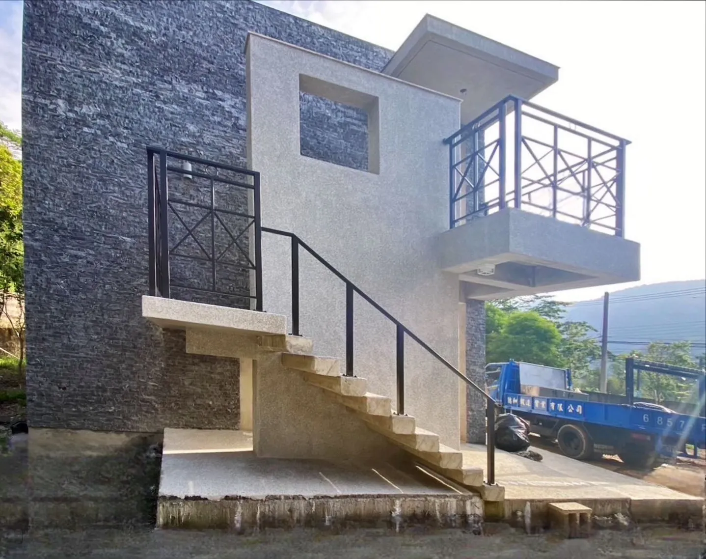 苗栗獅潭|室外不銹鋼樓梯扶手-本案位於苗栗獅潭,室外樓梯採不銹鋼欄杆設計,線條簡潔耐候性佳,穩固安全,與建築立面風格自然融合。