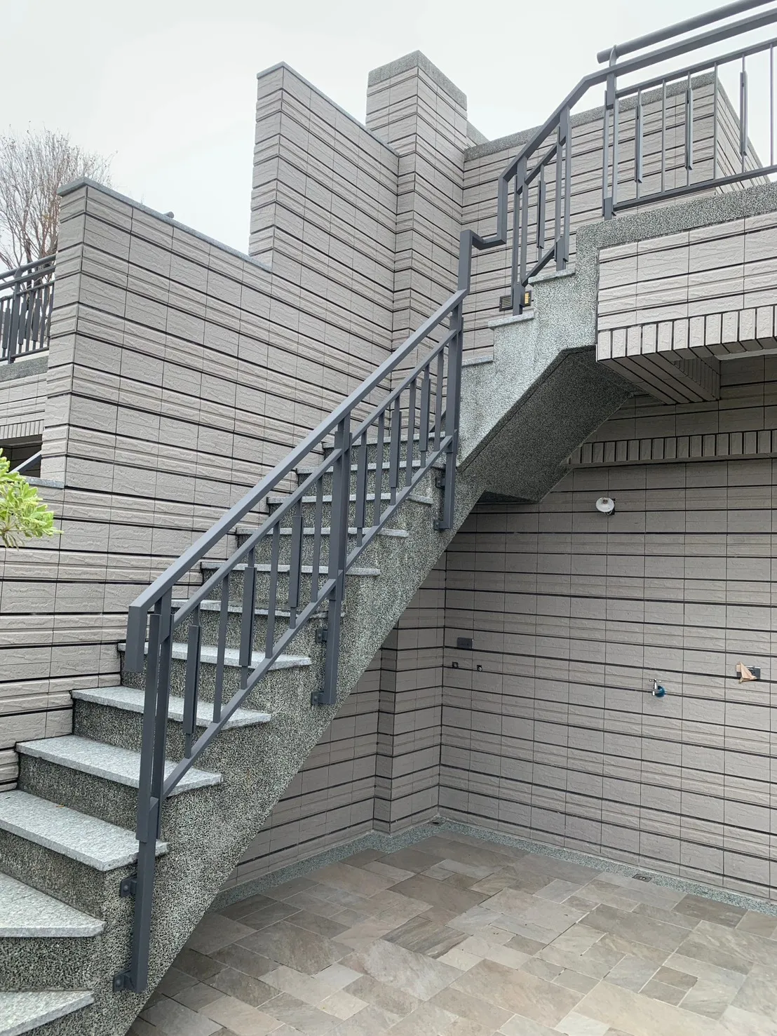 新竹竹北|室外不銹鋼樓梯扶手-本案位於新竹竹北,施作室外不銹鋼樓梯扶手,採霧黑造型設計,線條簡潔穩固,耐候不易鏽蝕,兼顧戶外安全防護與景觀整體美感。