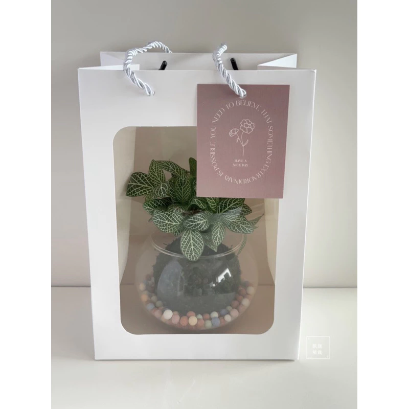 pvc透明提袋/窗口紙袋(不含植物、吊卡及裝飾小物)-苔球 盆栽 送禮 包裝 開幕誌慶 禮物 凱瑞植栽