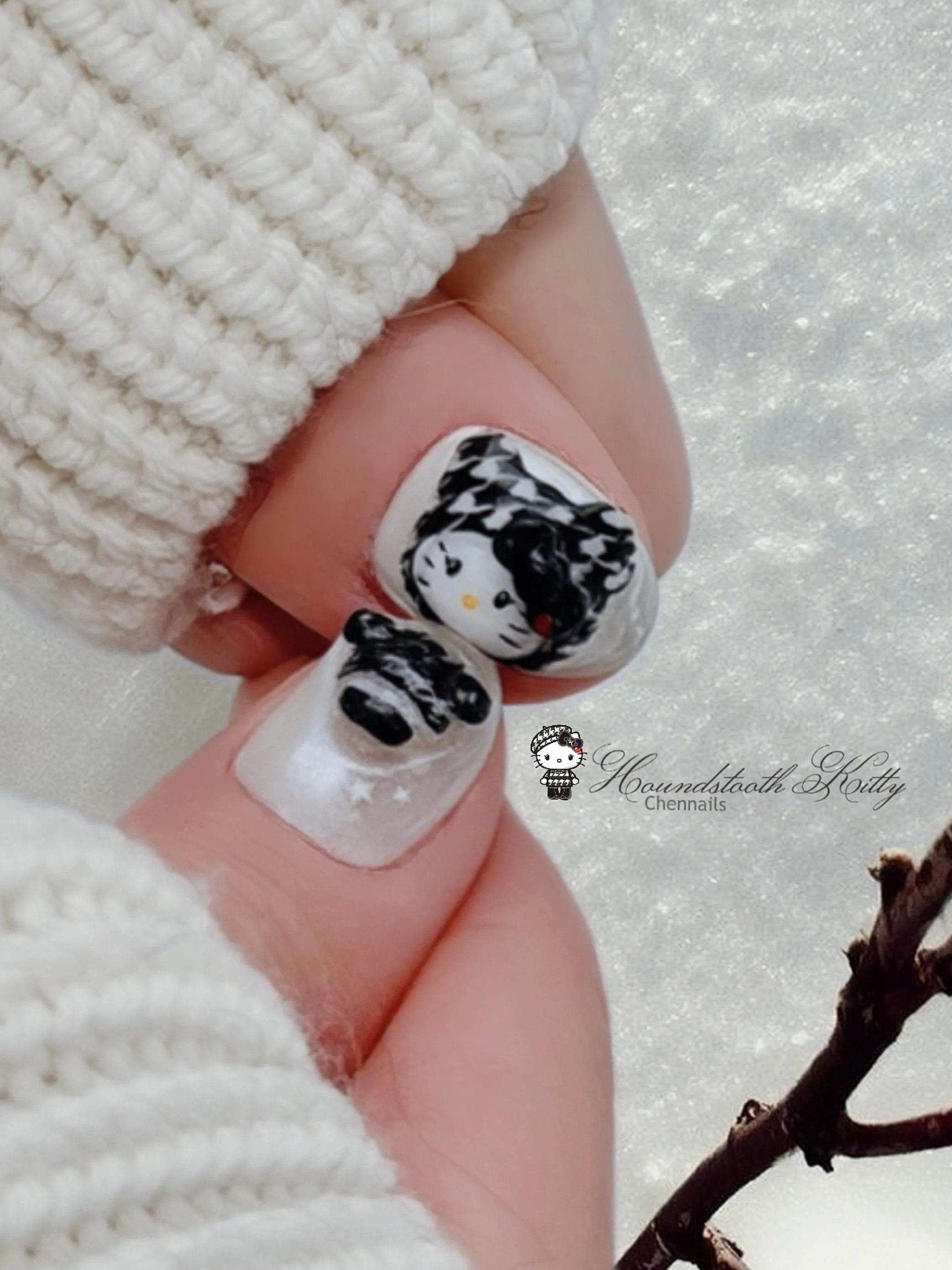 Jolin 同款千鳥格紋kitty |台北凝膠美甲|台北美甲