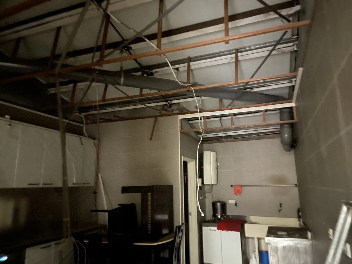 透天天花板拆除. 牆面修改