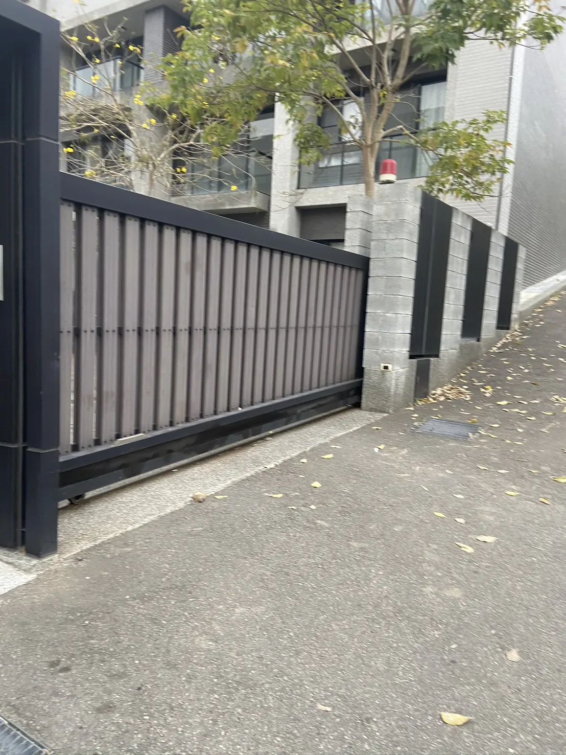 台中南屯|不銹鋼橫拉門社區大門工程實績-本案位於台中南屯社區入口,施作不銹鋼橫拉門,採直向格柵設計,線條簡潔俐落,兼顧通行安全與視覺穿透感,提升社區入口整體質感與秩序感。