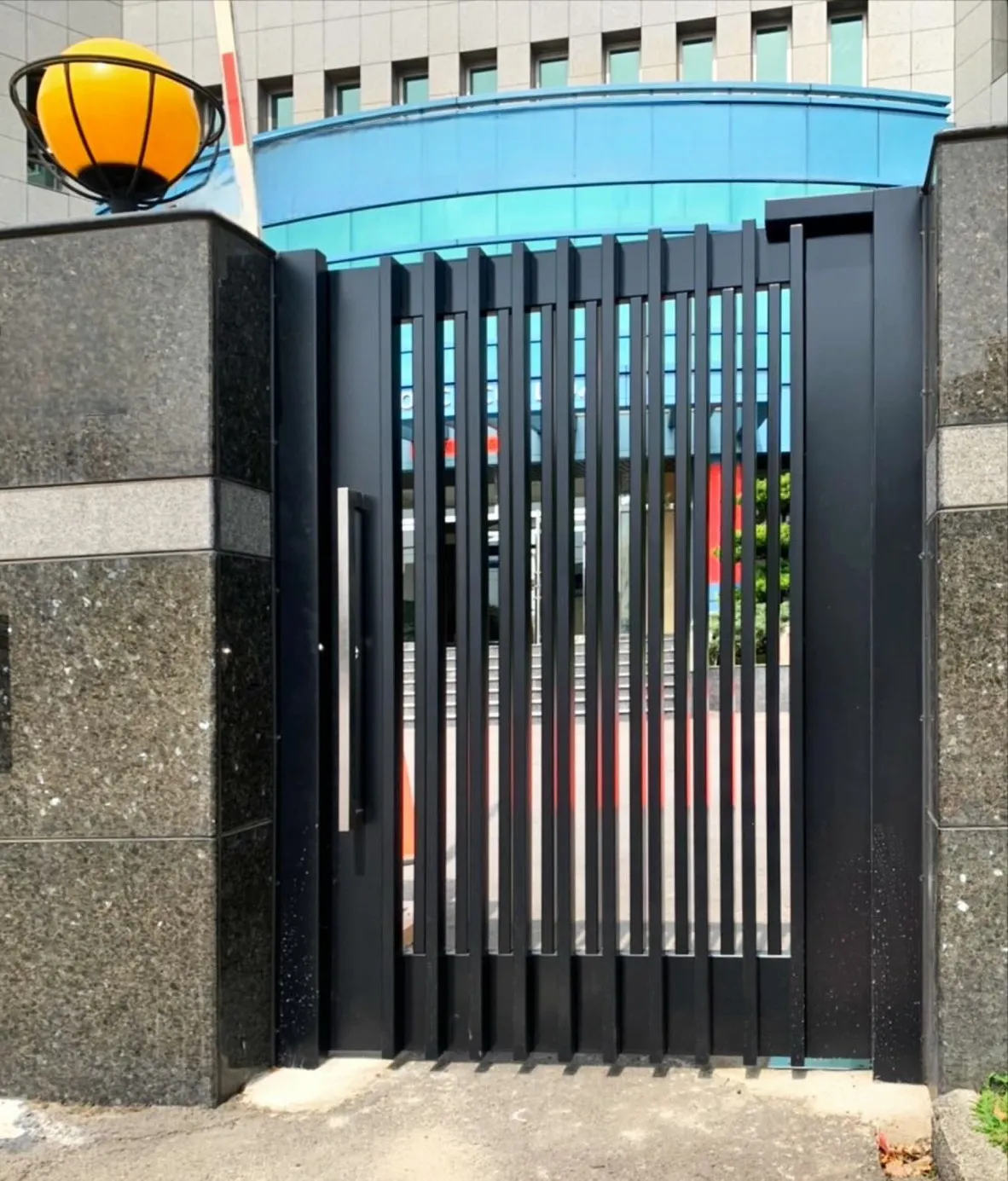 苗栗三義|不銹鋼造型玄關門・公司入口-本案位於苗栗三義,公司入口採不銹鋼造型玄關門,直向格柵設計簡潔俐落,兼顧出入管理、視覺通透與企業形象。