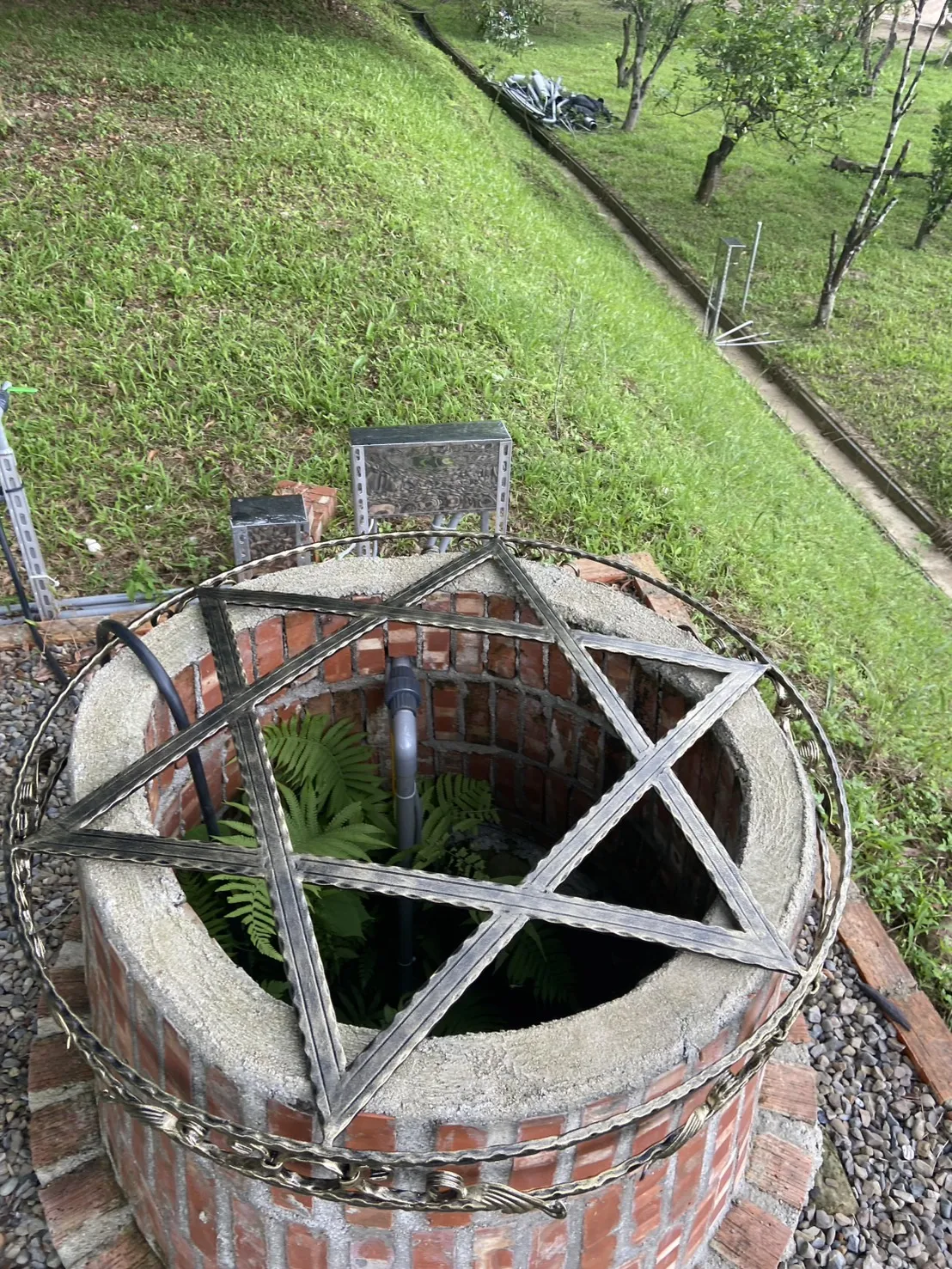 不銹鋼客製化古井鐵件裝飾蓋設計|新竹北埔-本案位於新竹北埔基督教農園,針對古井安全與美觀需求,設計大衛之星造型鐵件遮蔽,兼具防護功能與宗教意象,提升整體環境特色與安全性。