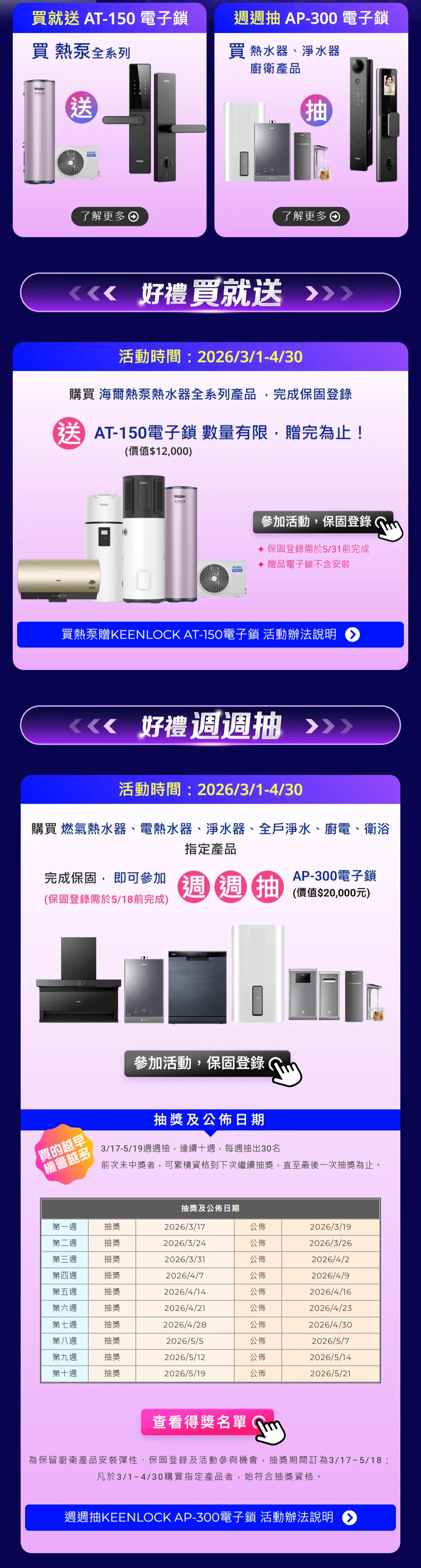 Haier 海爾廚衛 03.01~04.30 好禮鎖定你