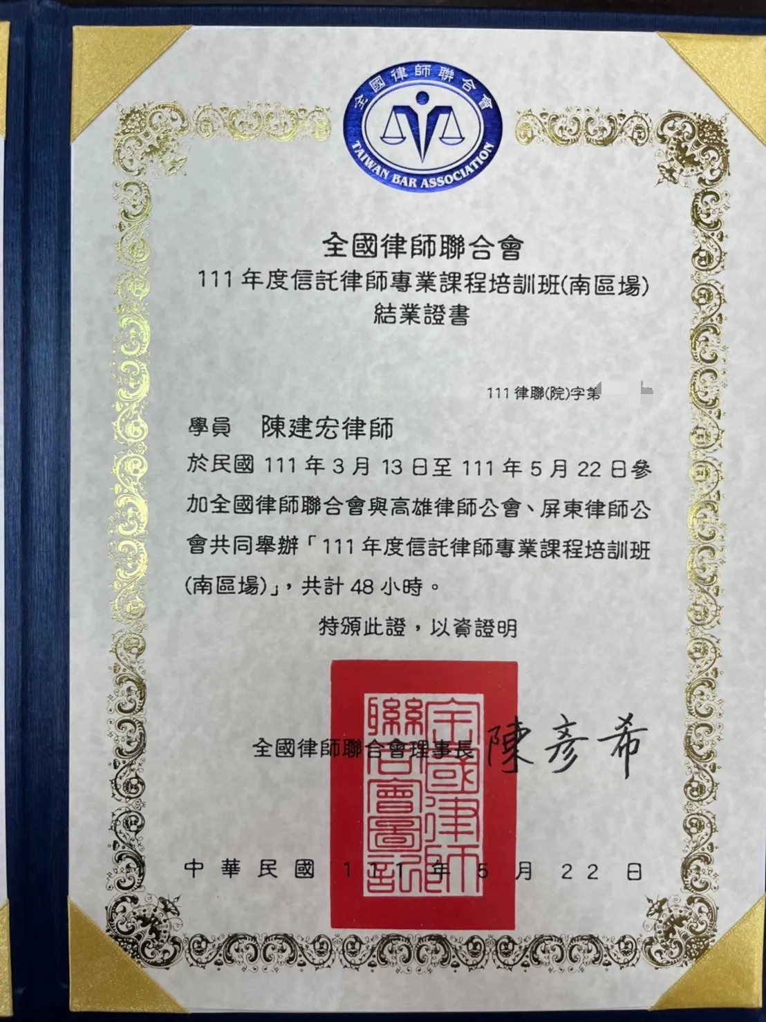 賀✨本所陳建宏律師信託專業課程結業