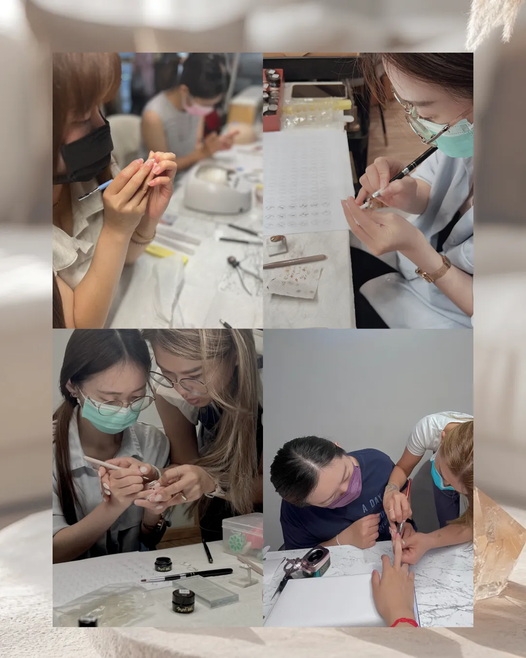• 熟練四大暈染類型(色塊、雲朵、刷痕暈染、石紋、暈染液、水彩、多層次堆疊效果)