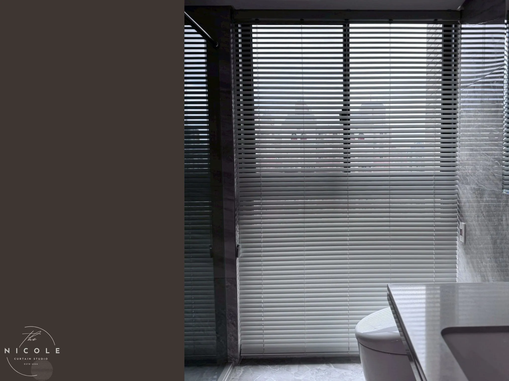 衛浴最怕潮濕與水氣,仿木百葉簾 50mm 在視覺上保留「木質溫潤」的風格語彙,但材質更適合潮濕環境,日常好清潔、耐用不費心。35mm 片寬線條細緻又大器,跟高級住宅常見的俐落衛浴立面很合拍;調光時能兼顧採光與隱私,維持明亮又不尷尬。