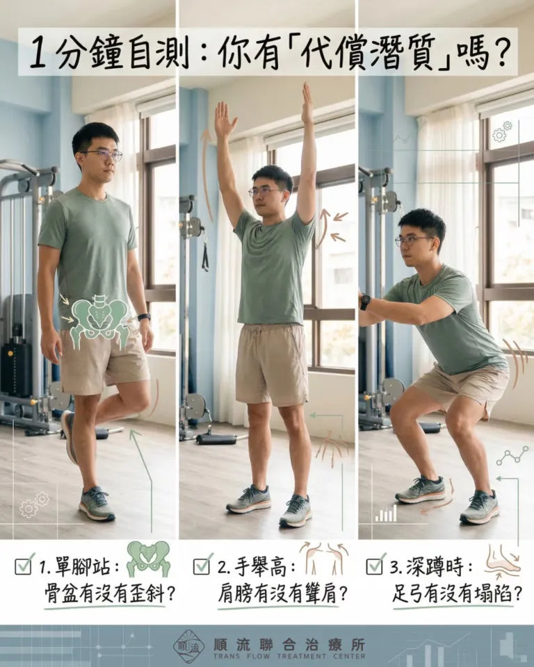 評估了阿明的動作模式,發現他的身體正在「走捷徑」。這就是典型的「 代償 機制 」:當你想做深蹲時,大腦為了省事,避開了失能的臀部,改叫腰部肌肉出來硬扛。