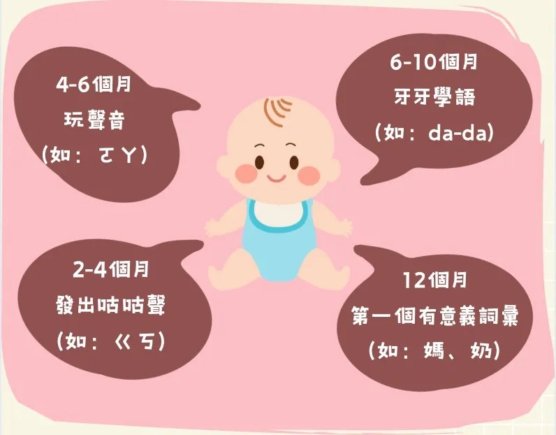 透過發出無意義的聲音,以練習發聲器官的協調性,逐步學會發出更清晰的字。這是逐步形成說話能力的過程。