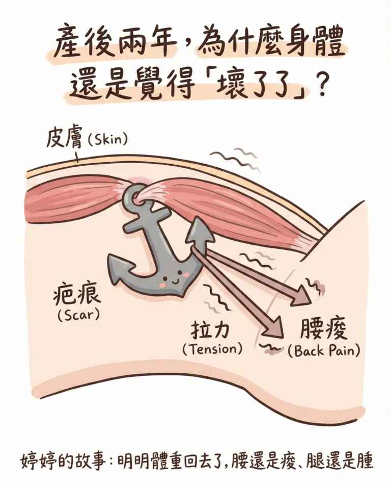 本文將透過一個真實的臨床案例,帶您深入了解 剖腹產 疤痕如何透過「筋膜力學」與「淋巴循環」機制,成為影響產後生活品質的隱形殺手。