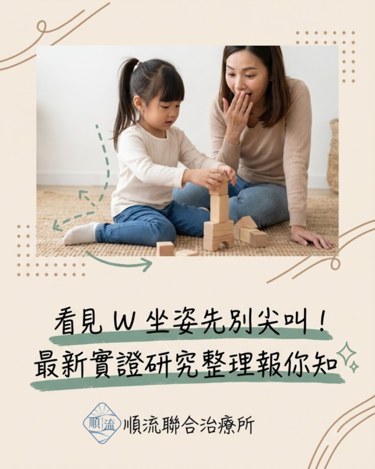 身為治療師,我們非常理解家長的焦慮。然而,隨著近五年臨床研究的進展,我們對於「 W型坐姿(W-sitting)」的看法已有了更全面且平衡的認識。今天,順流聯合治療所將帶領大家,從實證醫學的角度,重新認識這個讓許多家長「心驚膽顫」的坐姿。