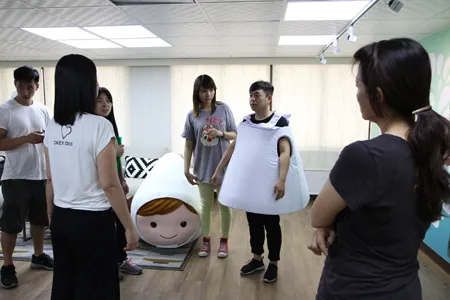 「小紅帽火車糖果屋之旅~加藤真治45週年插畫特展」的活動人偶裝內模試穿