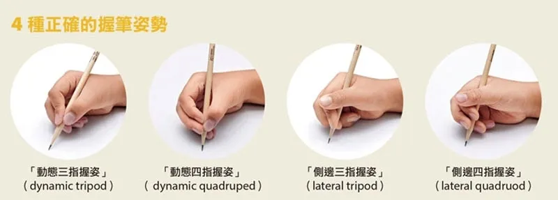 什麼才是正確的握筆姿勢?以下四種姿勢最為普遍,且都被視為成熟的握筆姿勢:
