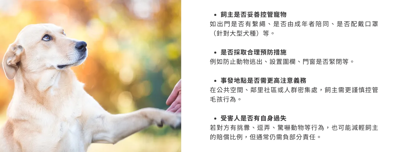 當爭議發生時,法院會從以下幾個面向來判斷飼主是否有責任: