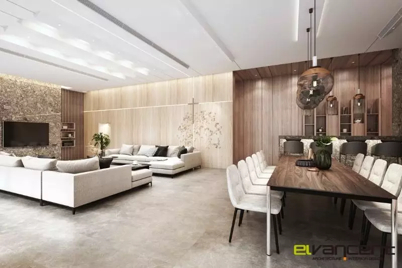 進入家中,寬敞的客廳映入眼簾。空間以沉穩的大地色調為基底,揉合溫潤木質與低彩度的石材質感,打造出一種不張揚卻深具質感的靜謐氛圍。家具選用風格簡約卻細節講究的設計,線條俐落、材質精緻,恰到好處地體現「低調奢華」的精神。整體佈局講究比例與留白,讓空間自然而然地散發出一種大器與從容,不需多言,氣度已在無形中流露。