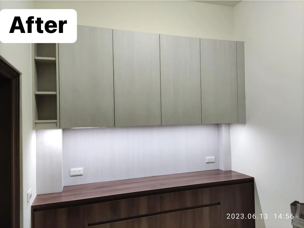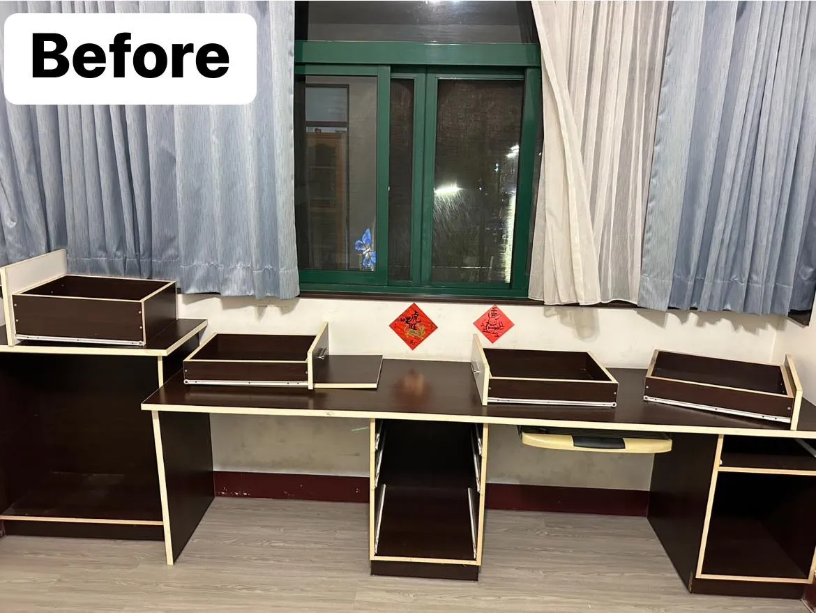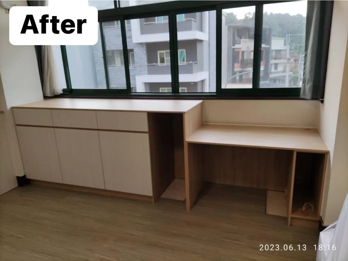 從原本陪伴二十多年的書桌櫃,到現在專屬規劃的新櫃體,不僅改善了 收納空間不足 的問題,也兼顧了 生活動線與安全性。