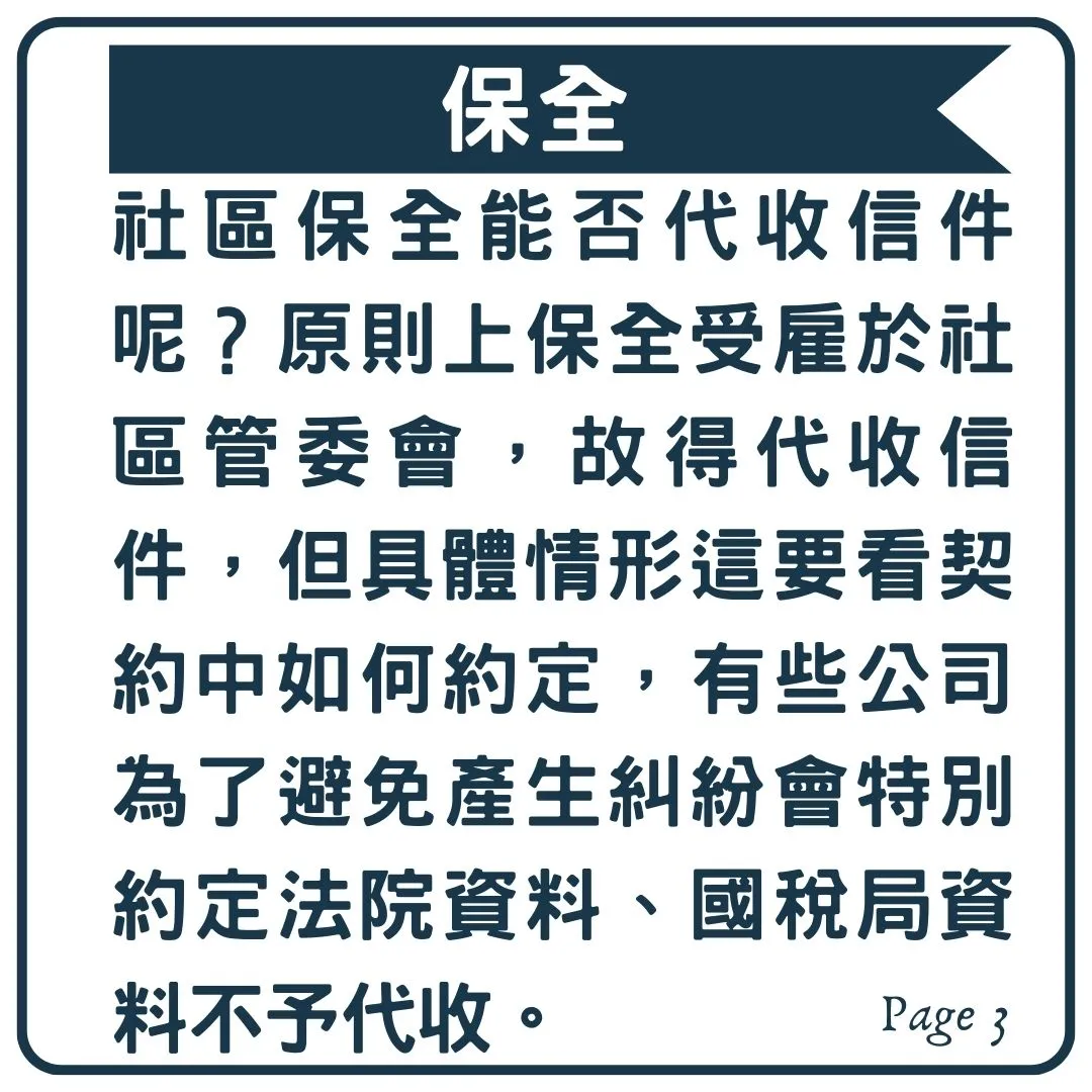 就竟社區的總幹事、保全是否能夠代收信件呢?