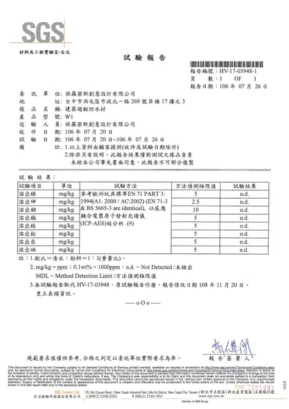 - 環保材料、低毒,SGS重金屬試驗合格。