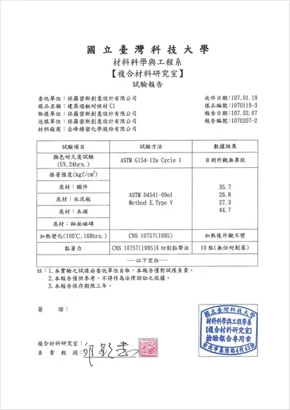 - 材料特性:具有相當好的塗膜硬度、高接著、耐磨、耐刮、耐UV及防腐蝕等優異特性。適合應用在室內及戶外的無機物結構體表面,亦可作為底漆、封塗和面漆塗層使用。