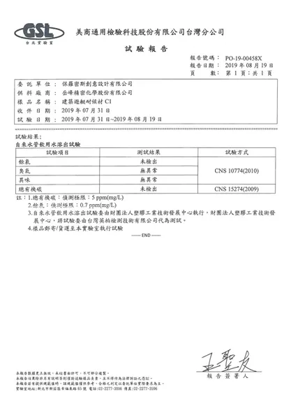 - 優異的色彩保持性(除了亮紅及亮黃在經過二年太陽曝曬後有較明顯退色外,其他色彩均具有優異的色彩保持性)。