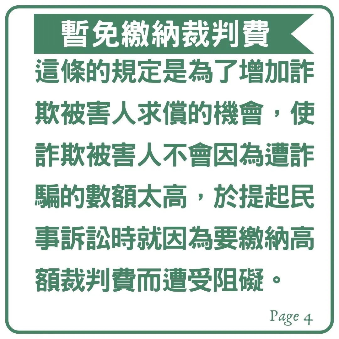 <詐欺犯罪危害防制條例 --- 暫免徵收裁判費>