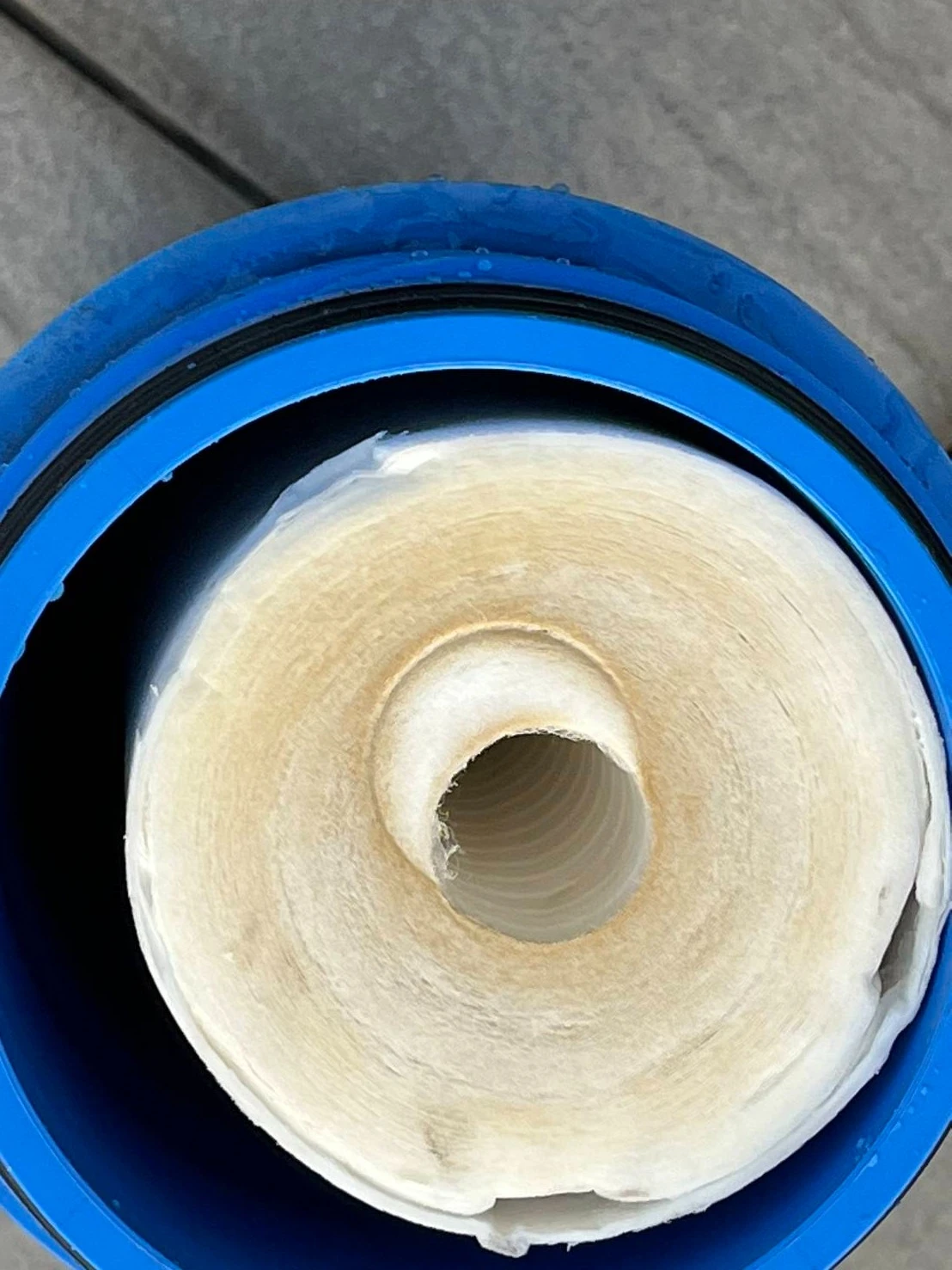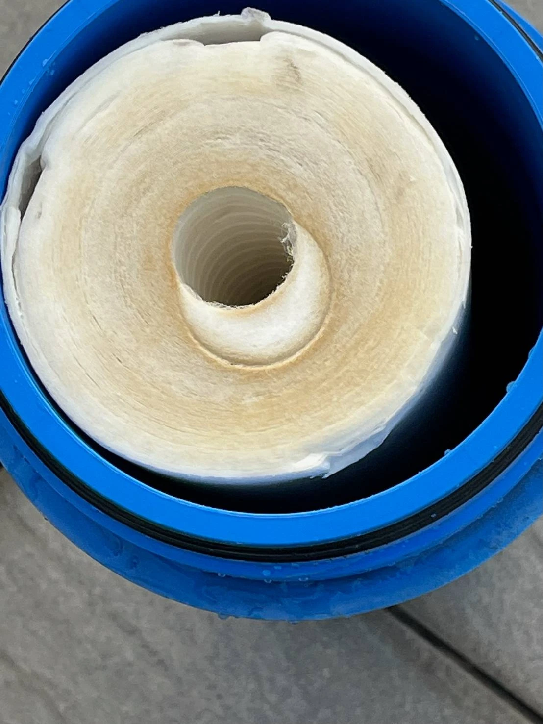 伯思淨水: 請問方便拍照給我們確認你們家安裝的全戶淨水器嗎?(客人傳來了兩張濾心照片)