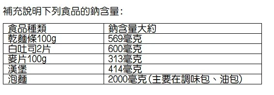 成人鈉攝取量為每日2400毫克,換算成食鹽量大約為每日6公克,一般均衡飲食適當調味下,鈉的攝取量都可控制在安全範圍內。鈉離子是人體必要的電解質微量元素之一,人體需要微量元素保持平衡,又不能攝取太多,網路上都可以查到不管哪一種微量元素,攝取過多都會造成身體無法代謝,負擔過重的問題