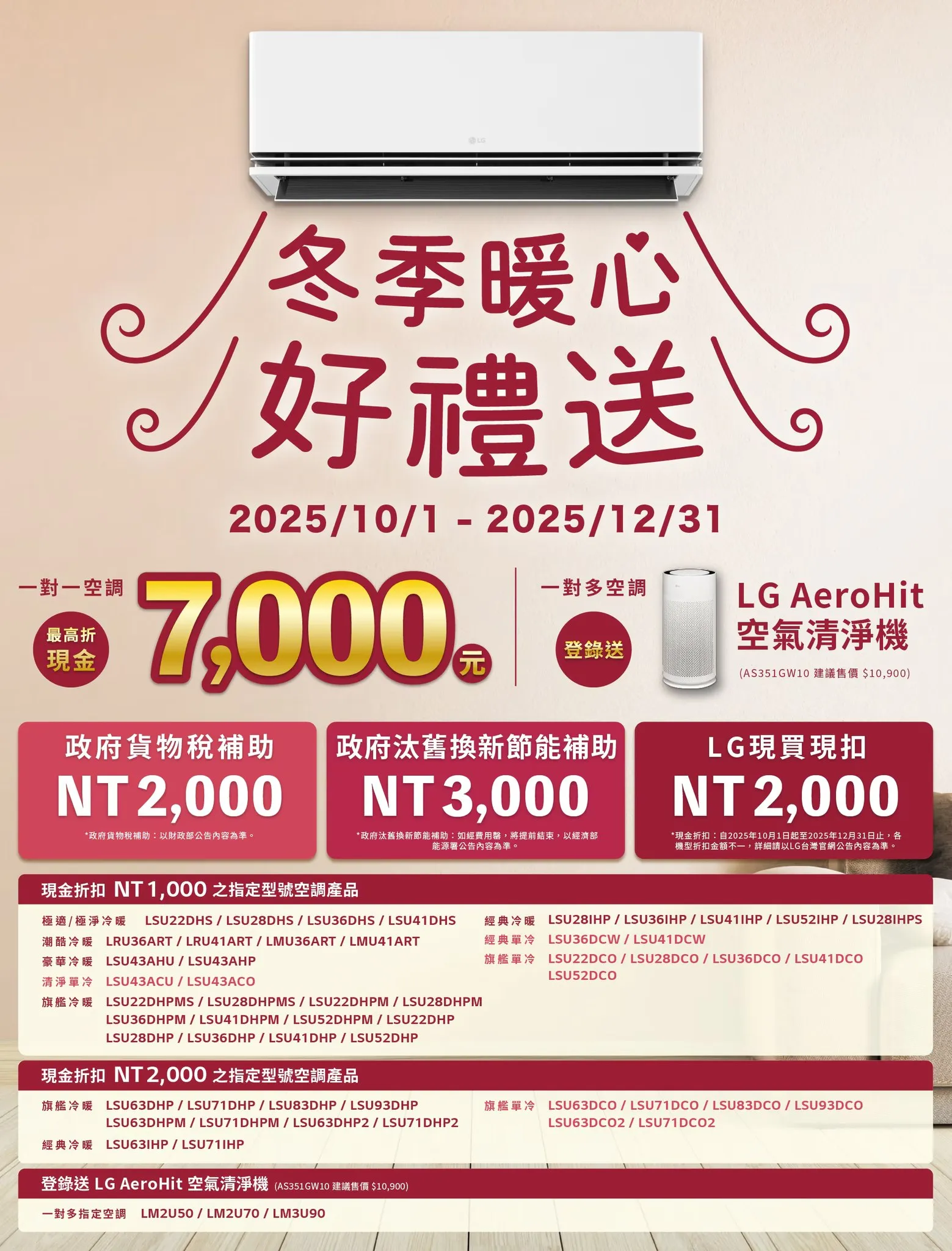 現在秋冬各個冷氣品牌活動時間來囉~✧*。٩(ˊᗜˋ*)و✧*。