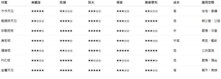 以下從 木作天花板、輕鋼架天花板、矽酸鈣板、美耐板、礦纖板、PVC板、金屬天花板 等多角度,帶你一次搞懂!