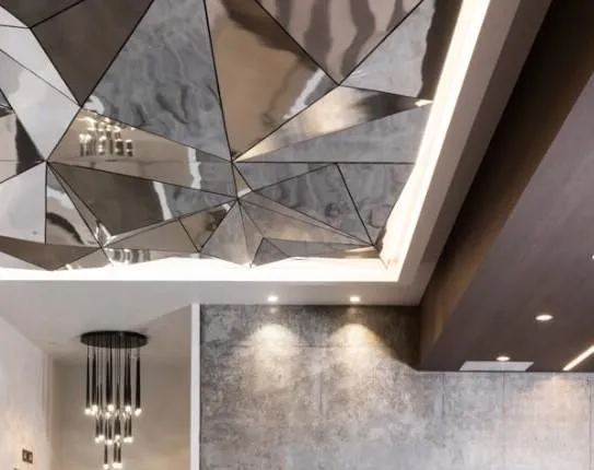 以鋁板、不鏽鋼板為主,可沖孔吸音或烤漆上色。