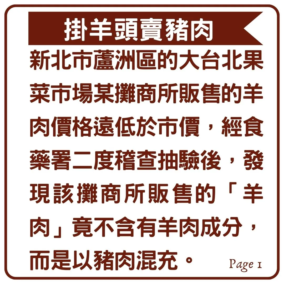 新北市蘆洲區的大台北果菜市場某攤商涉嫌掛羊頭賣豬肉,