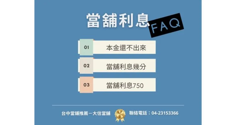 台中當鋪利息 常見問題快速FAQ