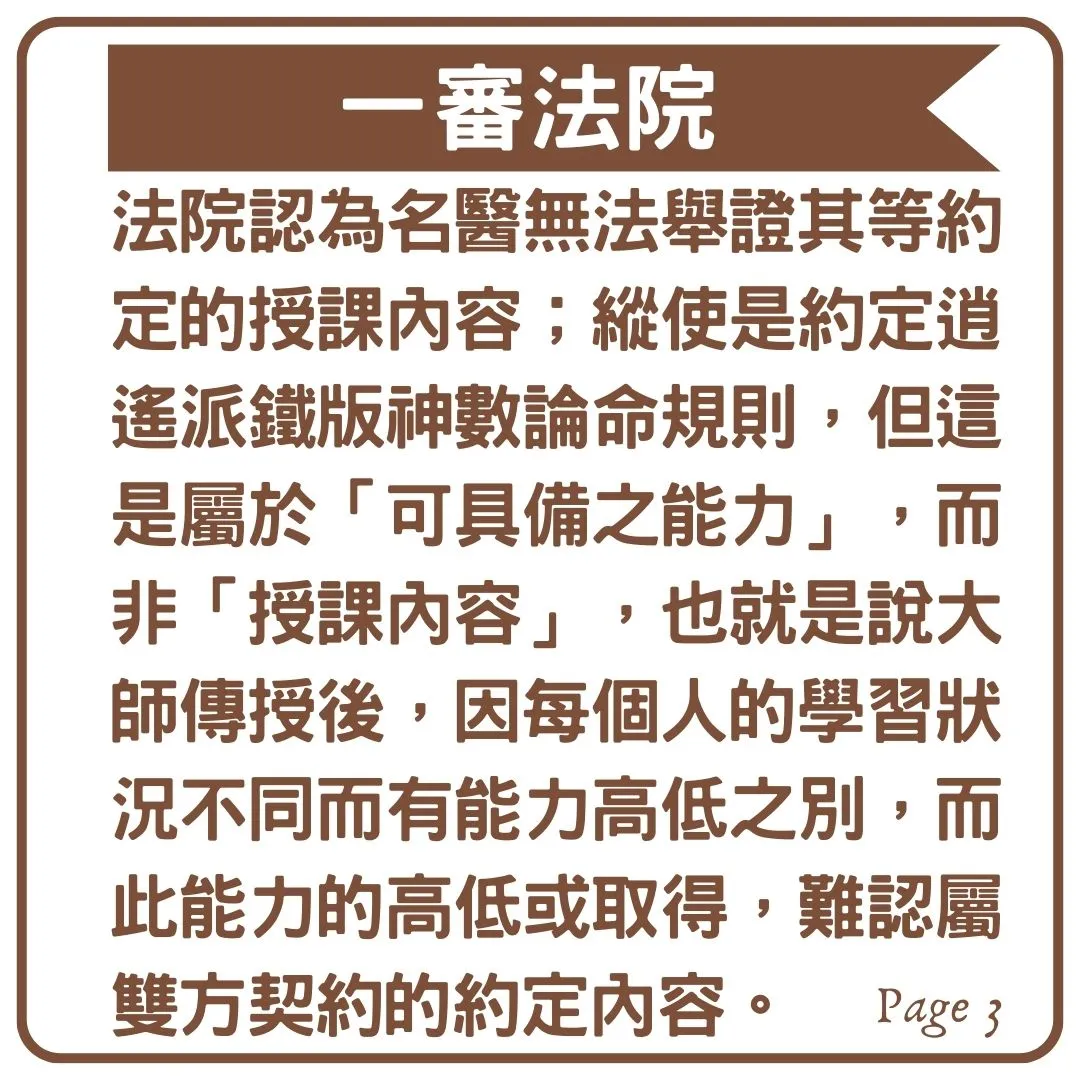 但因為認為大師沒有依約定教授課程而解除契約並請求返還學費,