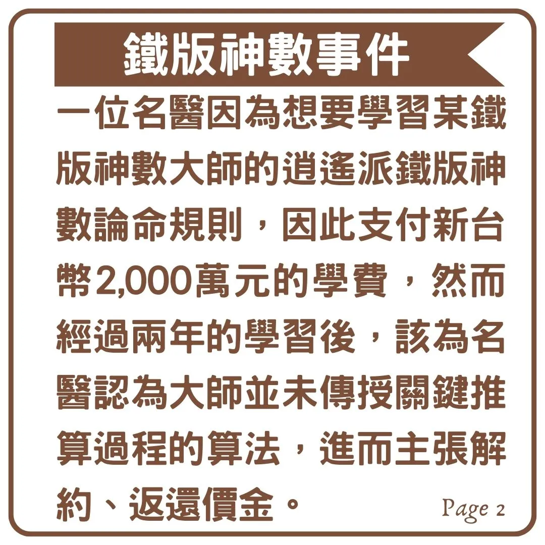 一位名醫花費了新台幣2,000萬元向大師學習鐵版神數,