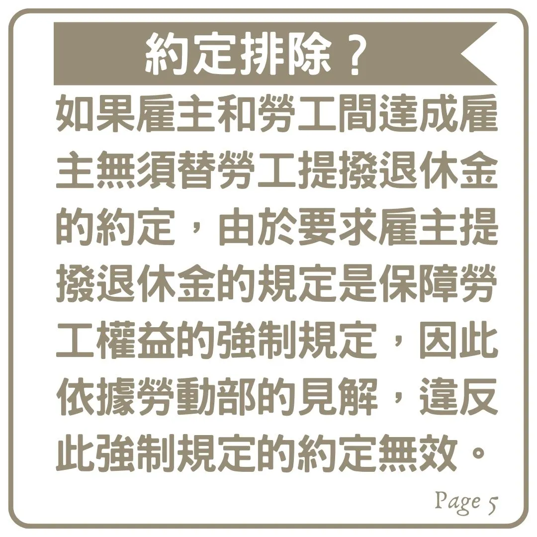 然而老闆卻跟阿明說:「我們公司的員工都同意公司不用提撥退休金,你同意嗎?」