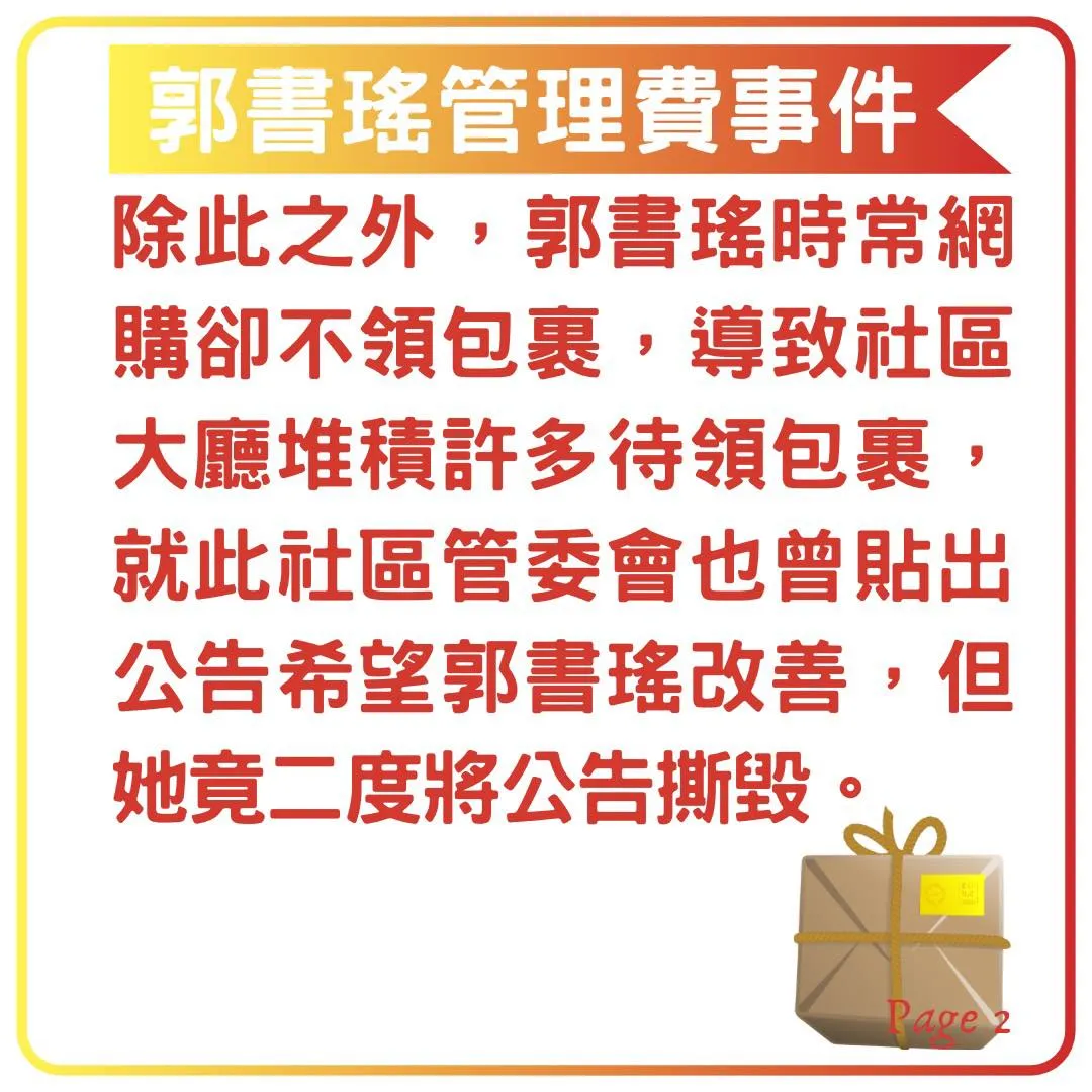 最近殺很大的瑤瑤在社區有積欠管理費、不領包裹以及撕毀社區公告的行為,