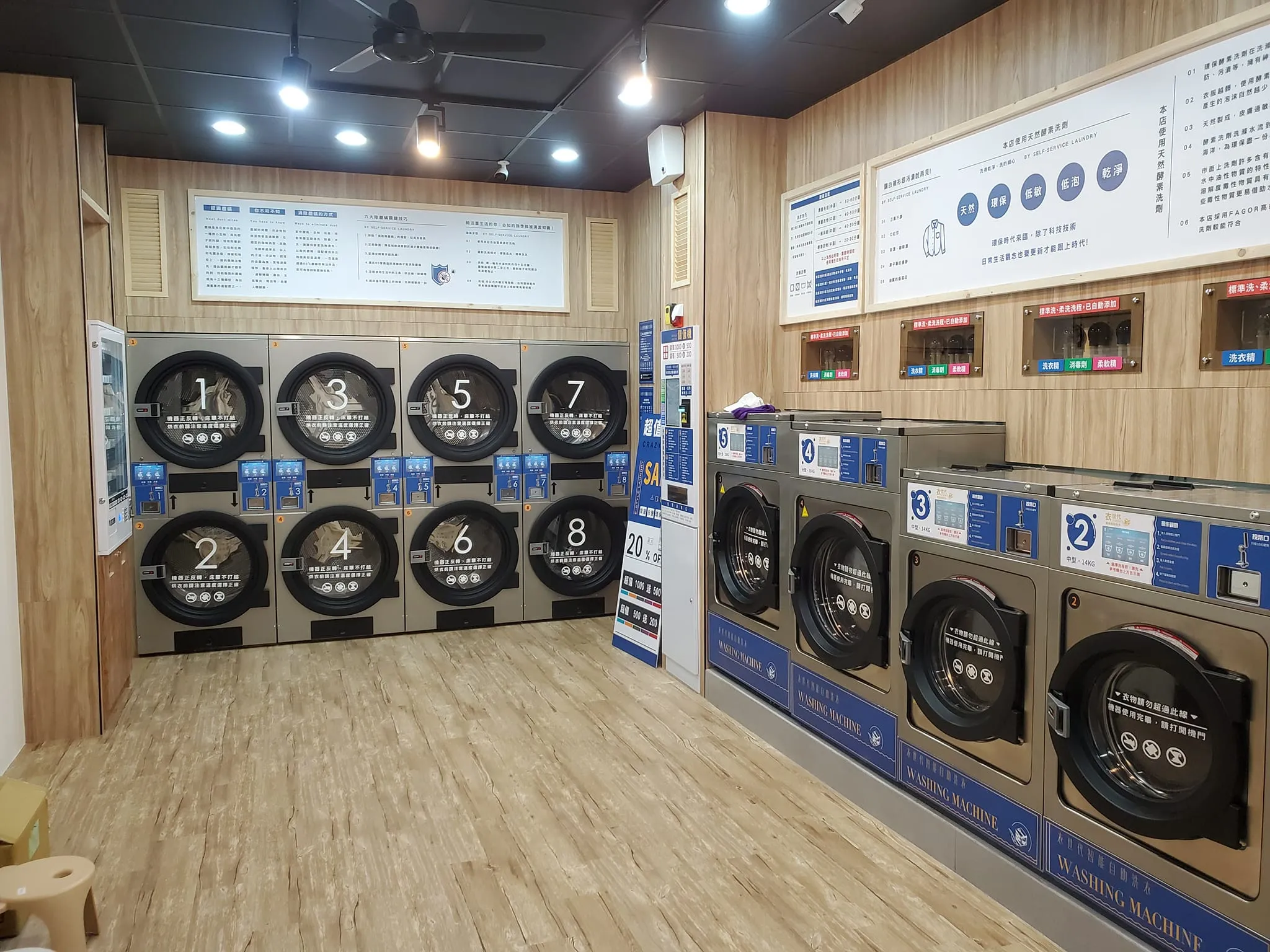 - 無須駐店即可管理營運,設備自動化完成洗烘流程。